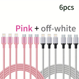 Durable Nylon Braided MFi Certified iPhone Charger Cables - 6 Pack Fast Charging USB-C to Lightning Cable for All iPhone Models