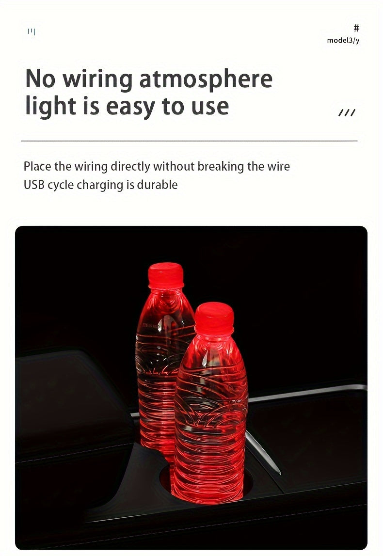 Installation is as easy as 1-2-3! Simply plug the USB cable into your vehicle’s USB port or any USB adapter, place the light in the cup holder, and you're ready to enjoy a dazzling atmosphere!